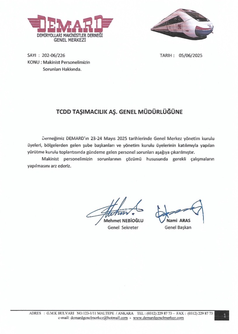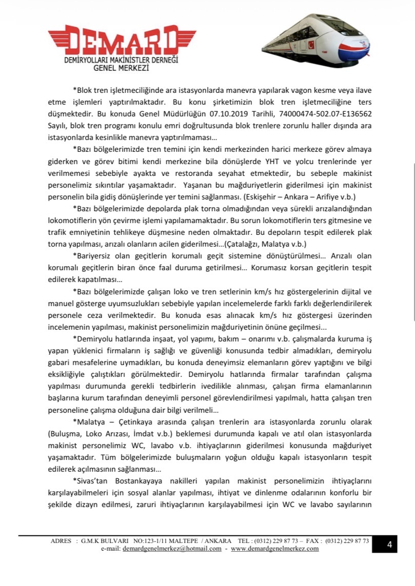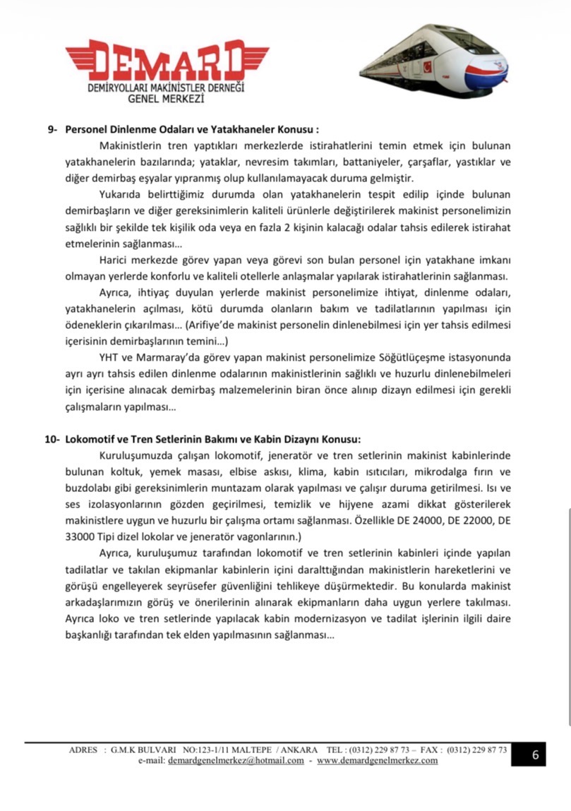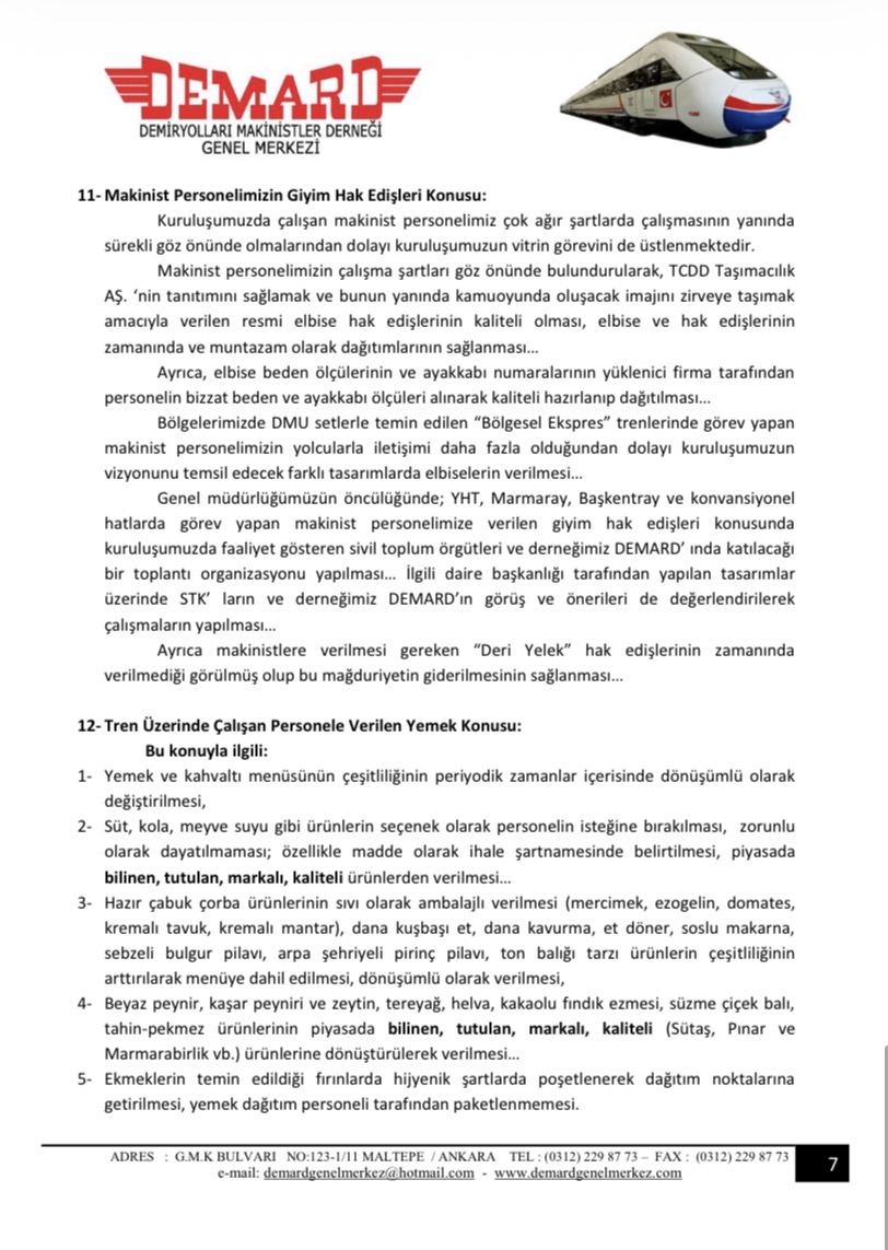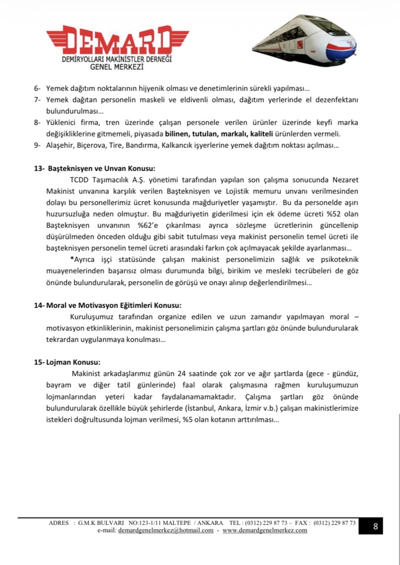 Toplantıda gündeme getirilen sorunlarımız maddeler halinde düzenlenip TCDD Taşımacılık A.Ş Genel Müdürlüğü’ne yazılı olarak iletilmiştir.