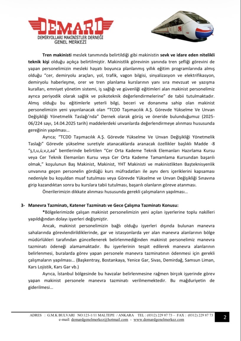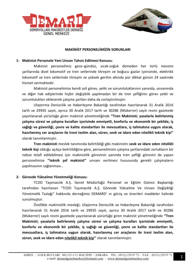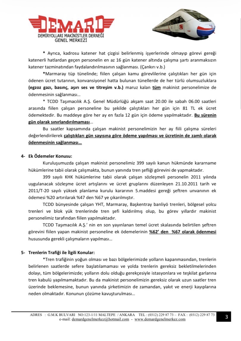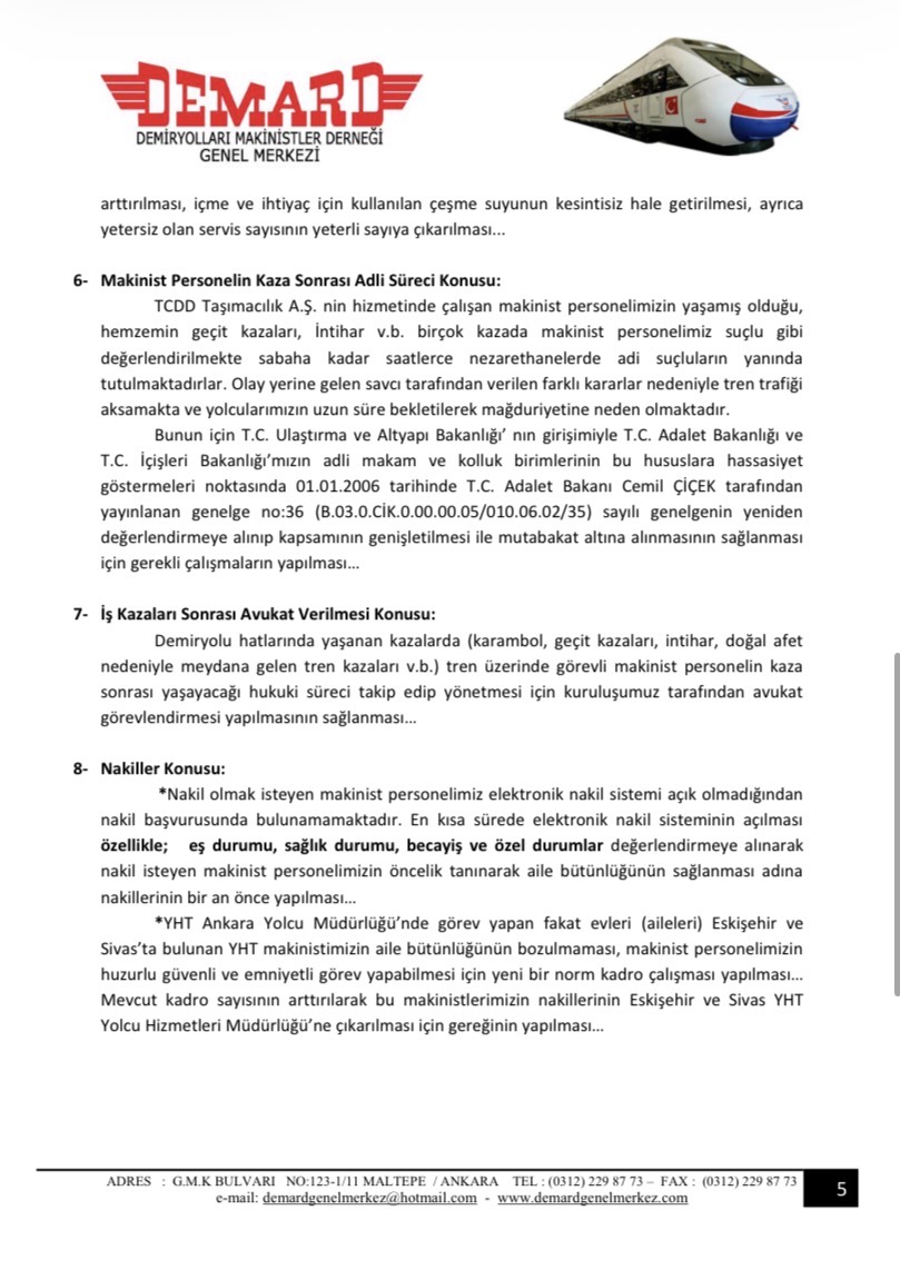 Toplantıda gündeme getirilen sorunlarımız maddeler halinde düzenlenip TCDD Taşımacılık A.Ş Genel Müdürlüğü’ne yazılı olarak iletilmiştir.